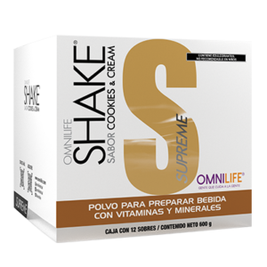 OMNILIFE SHAKE SUPREME COOKIES & CREAM, CAJA CON 12 SOBRES
